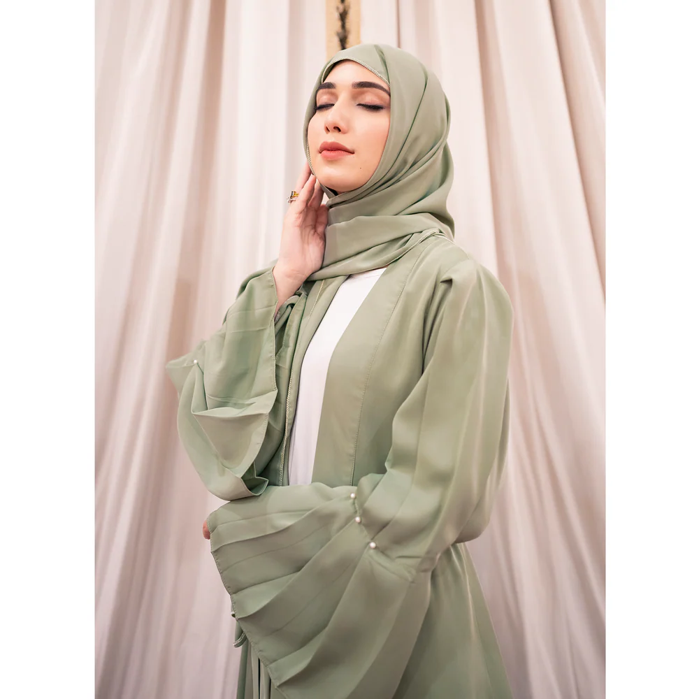 The Oyster Puff Sleeves Front Open Abaya in Pastel is designed for women who love a stylish twist on classic modest wear. Featuring soft pastel hues and trendy puff sleeves, this abaya offers a modern, feminine look while maintaining full coverage. Its front-open design makes it versatile—perfect for layering over your favorite outfits, from casual wear to formal attire. Crafted from soft, breathable fabric, it ensures all-day comfort without compromising elegance. Ideal for everyday wear, social gatherings, or special events, this abaya lets you express your style while staying modest and graceful.