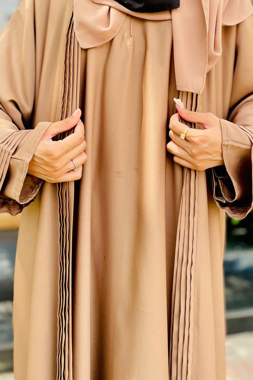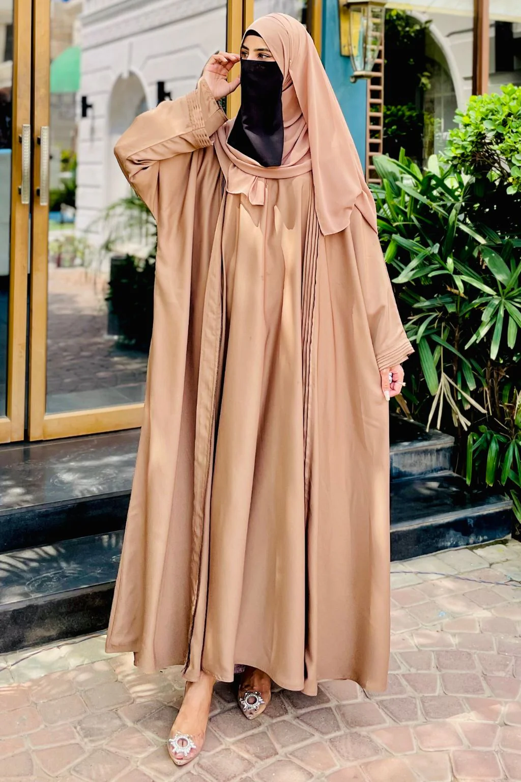Home Shop Abaya Turkish Oyster Front Open Soft Drape Abaya Set