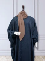 Crafted from premium Turkish CEY polyester, the fabric is soft, lightweight, and breathable, ensuring comfort throughout the day. The rich dark teal shade adds a chic, modern appeal while remaining versatile for accessorizing with jewelry or hijabs. The relaxed fit drapes beautifully over the body, providing a flattering silhouette suitable for various body types.
