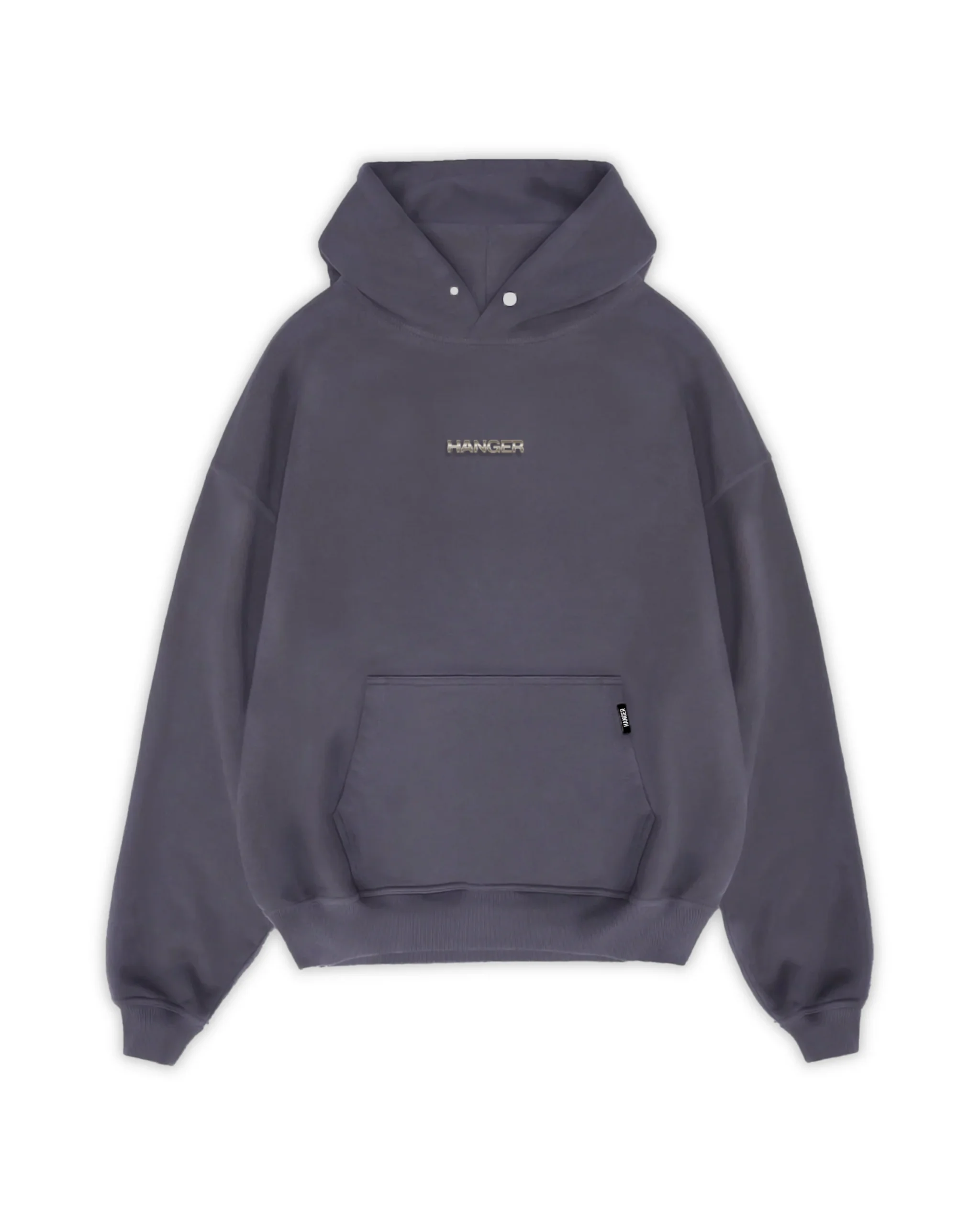 Super soft and ultra comfortable oversized hoodie with kangaroo pockets, ribbed hems & drop shoulders featuring a metal logo badge.