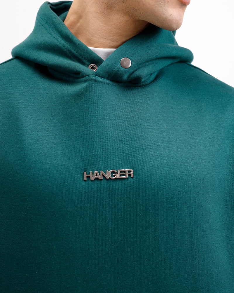 Super soft and ultra comfortable oversized hoodie with kangaroo pockets, ribbed hems & drop shoulders featuring a metal logo badge.
