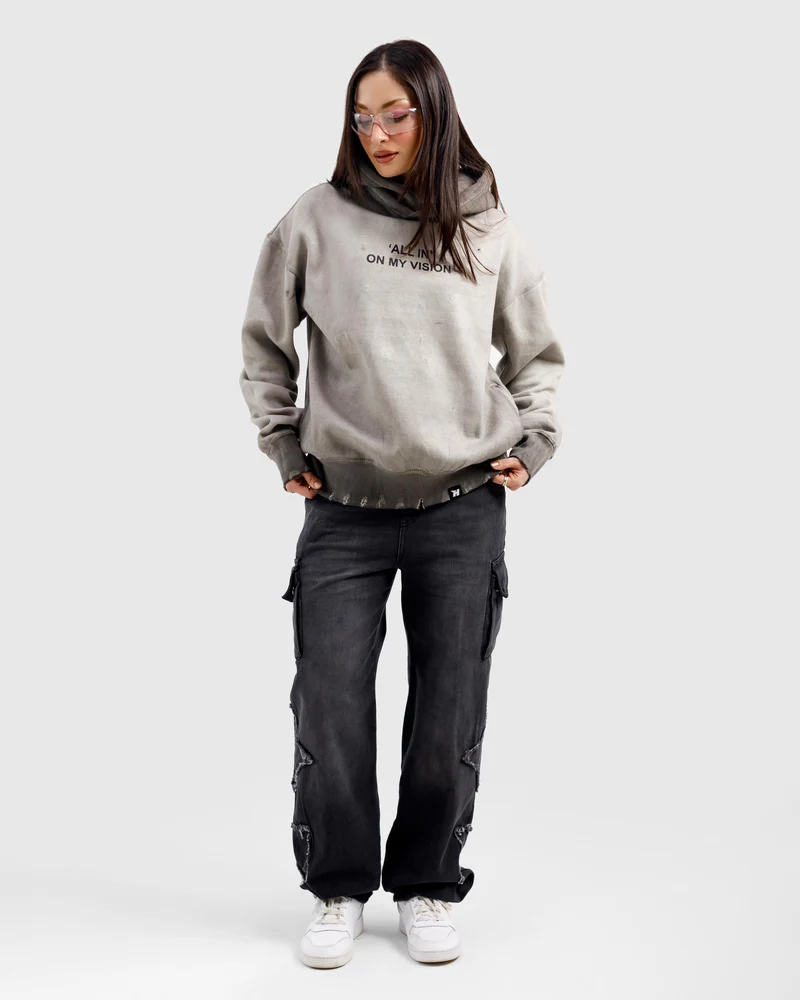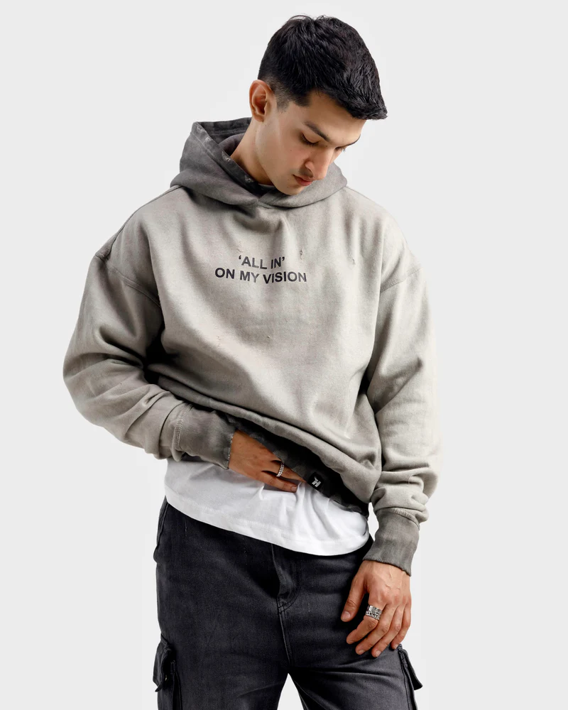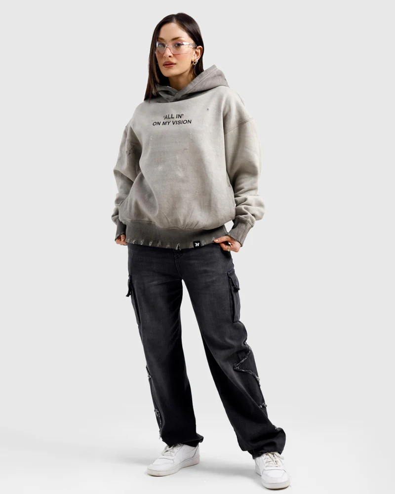 Washed All In On My Vision Distressed Hoodie