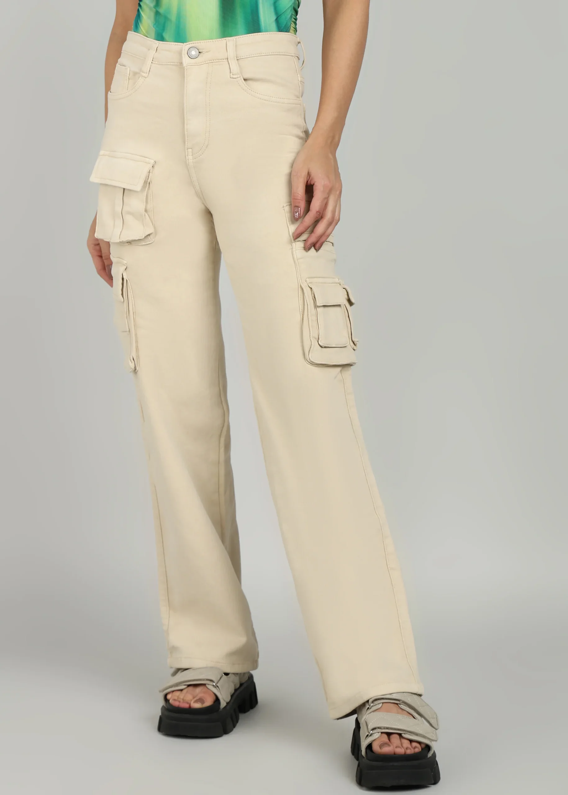 Stay effortlessly stylish with Women Cream Straight Fit Cargo Jeans—modern straight fit, utility design, and versatile cream color for any occasion.