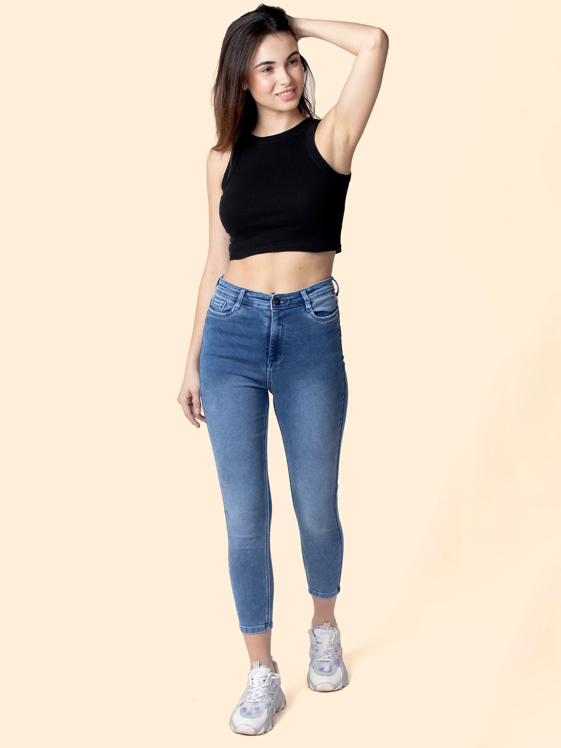 Category: Jeans Tags: Light Blue Skinny Jeans, Stretchable Cropped Jeans, Women’s Jeans