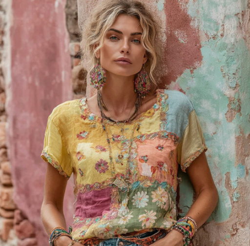 Be the first to review “Womens Retro Printed Patchwork Crew-Neck Top” Cancel reply