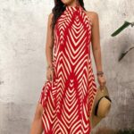 Chiffon Halter Tea Length Dress Sassy Skirt