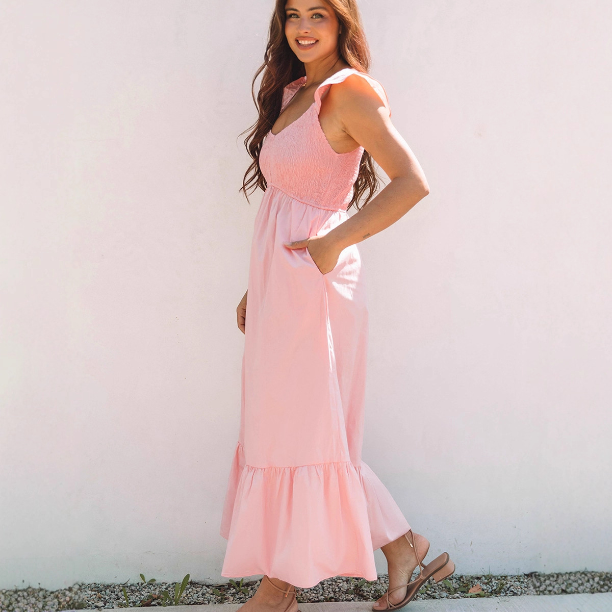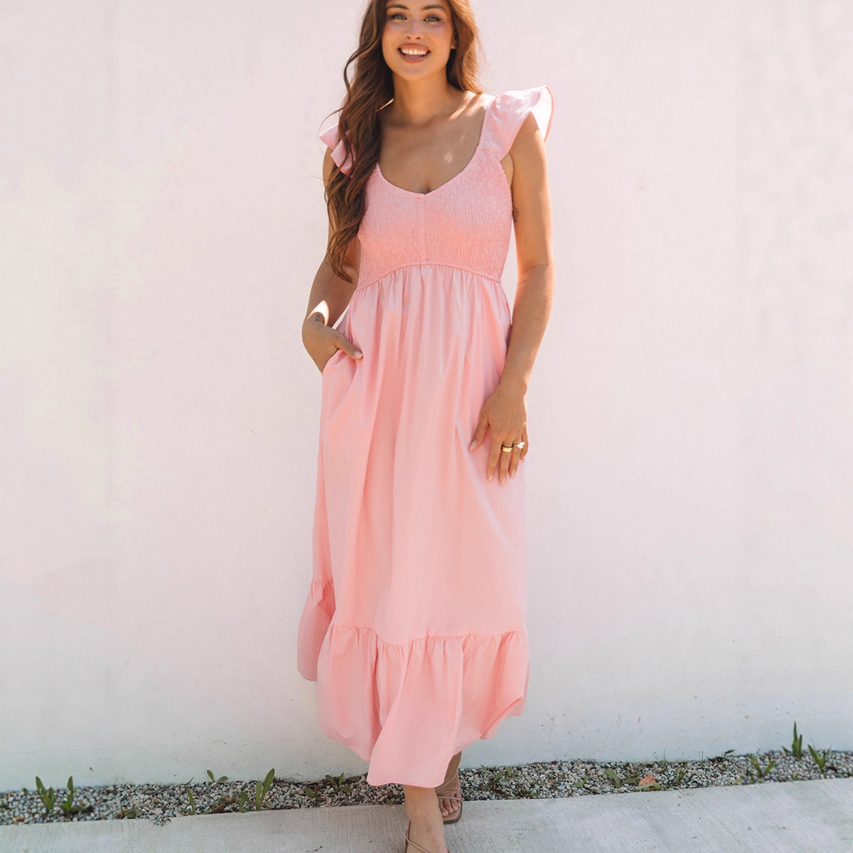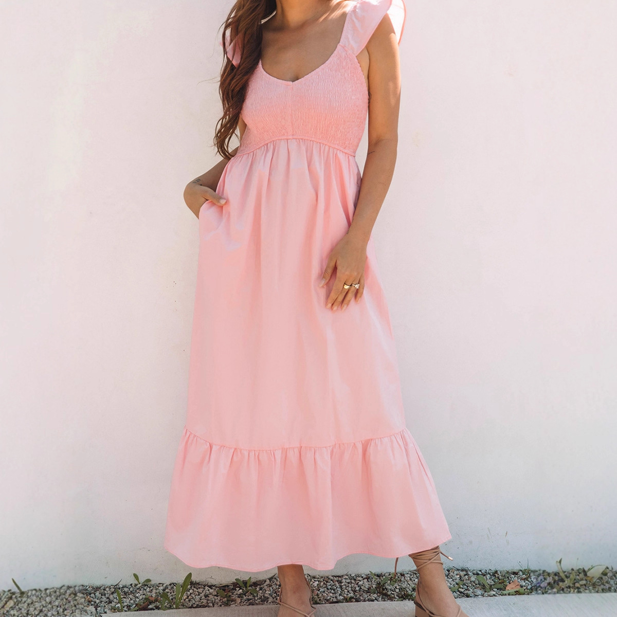 Home Shop Lady Dress Womens Fashion Pleated V-Neck Short-Sleeve Dress