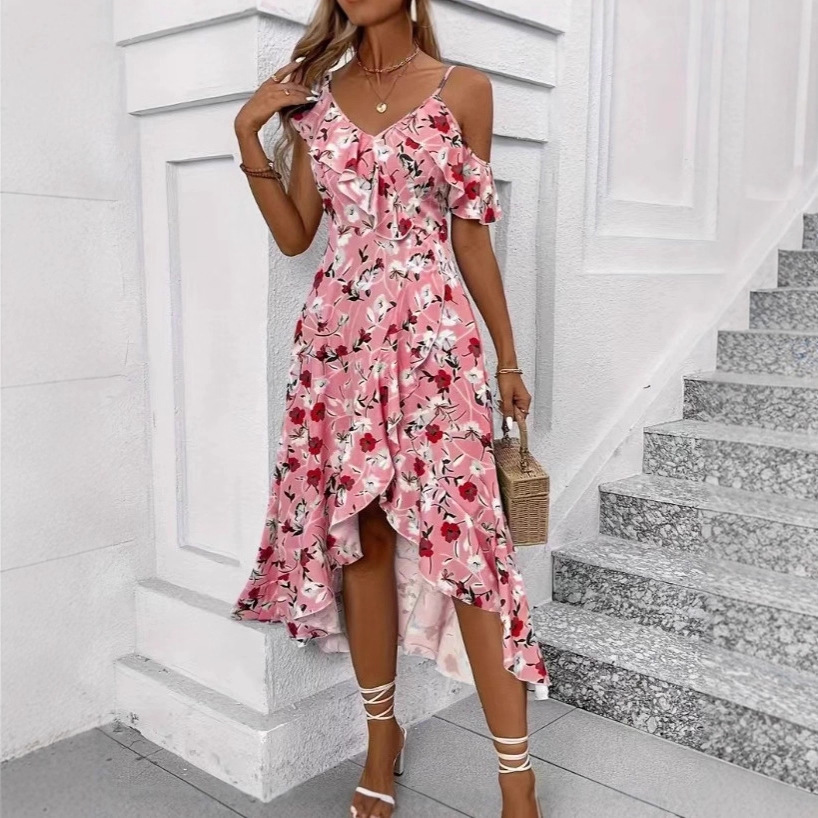Womens Casual Loose-fit Printed Dress With An Asymmetrical Hem