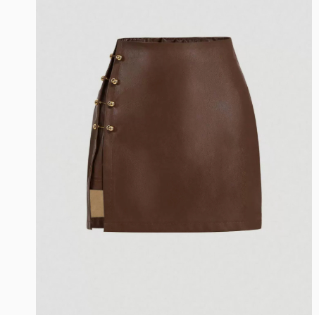 Be the first to review “Womens Solid-Color Faux Leather Mini Skirt With Metal Buttons” Cancel reply