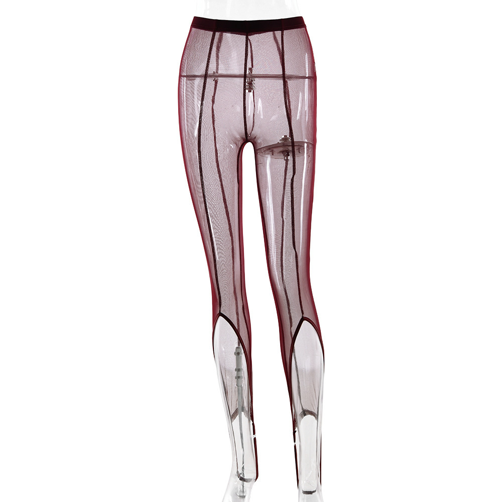 20D Cotton Yarn fabric, single layer see-through design, vertical stripe design foot elastic band design